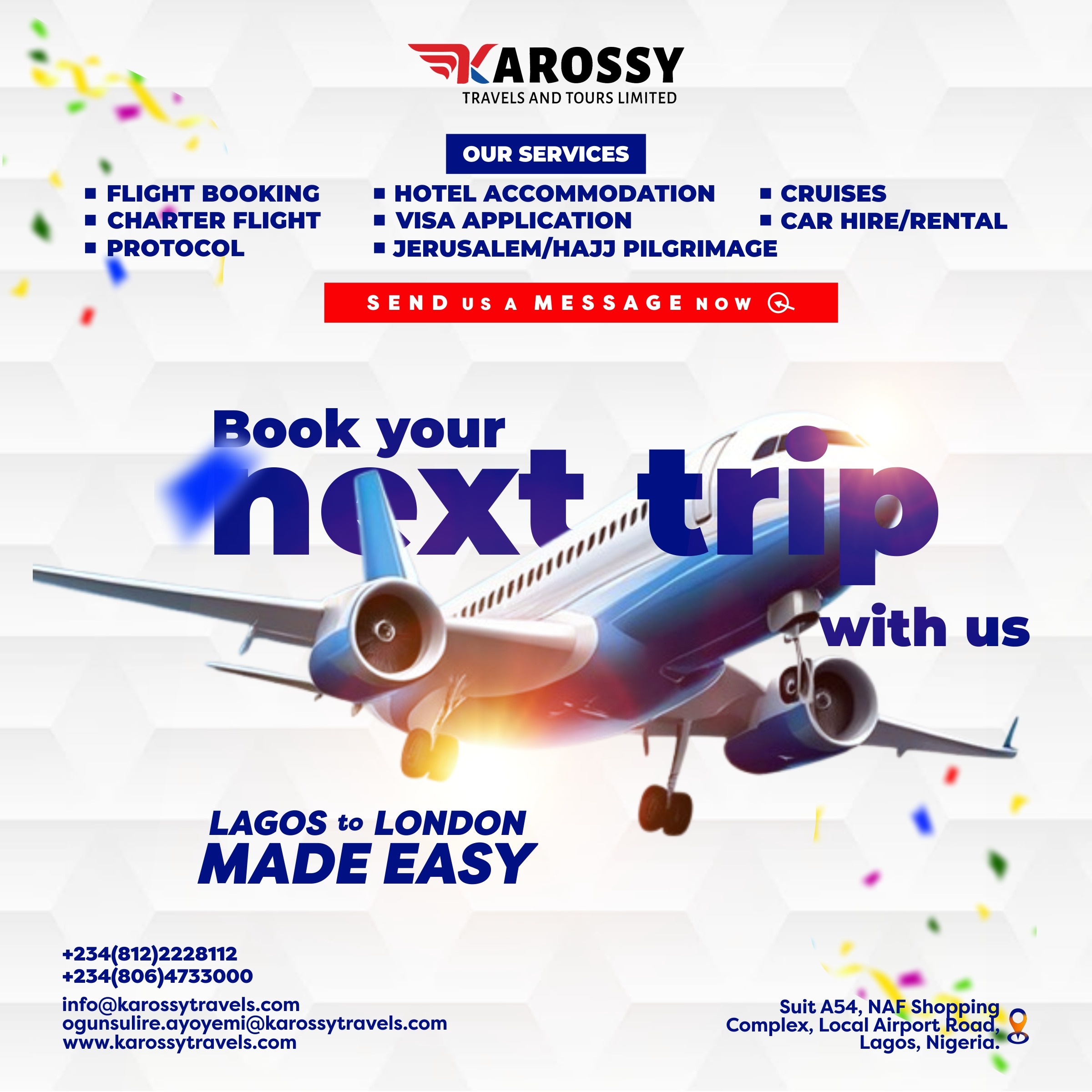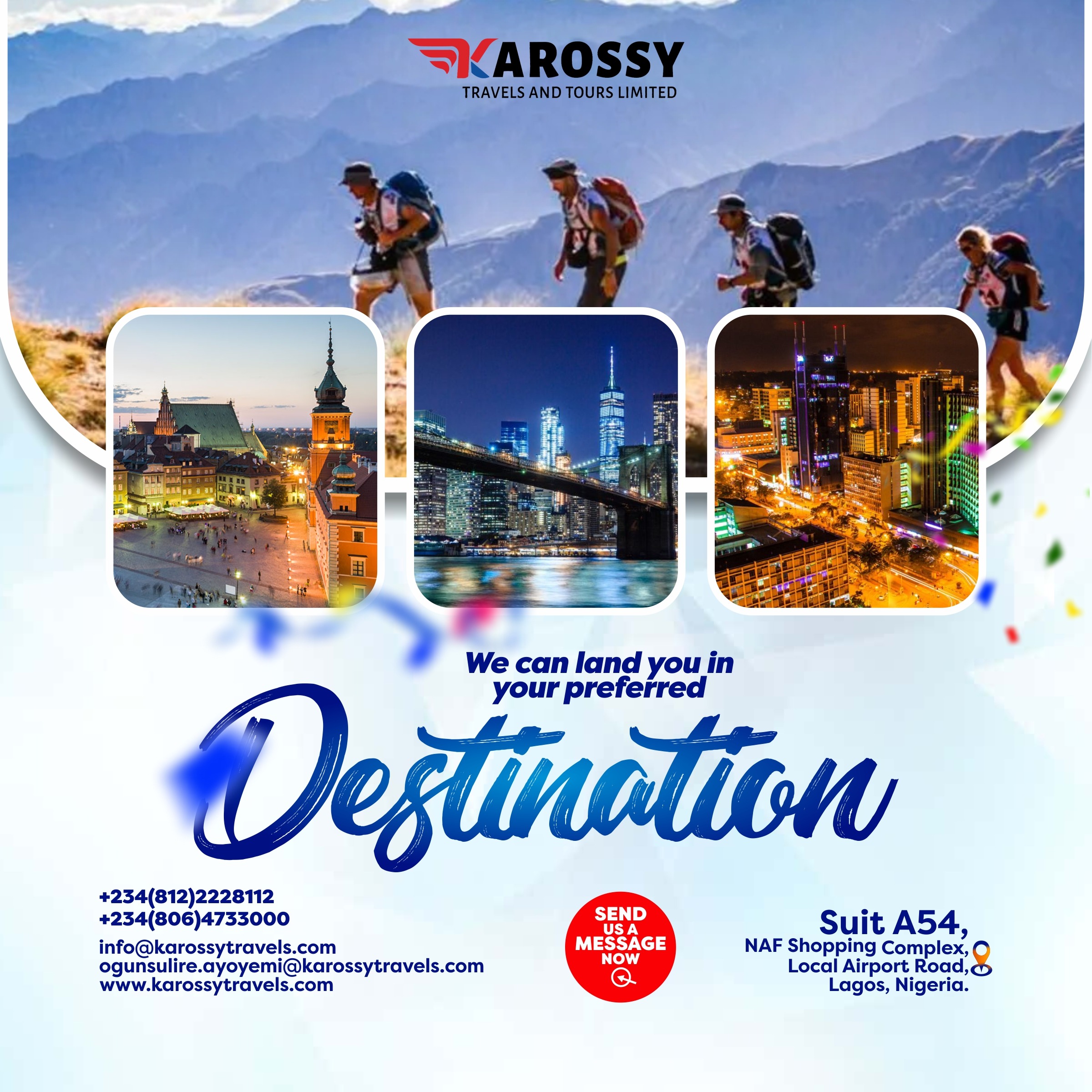 Your first step in how to start planning a trip is to choose a perfect travel partner that meets your interest and travel budget. whether you are planning for an oversea trip or travelling withing the country, Karossy Travels & Tours Limited is here to help make your trip a memorable one. Have fun and relax, we’ll do the rest for you!